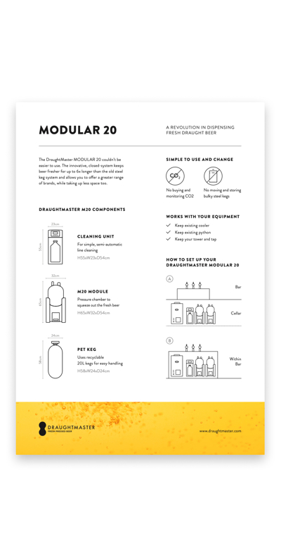Διαρκής ποιότητα. Ενώ η μπύρα σε μεταλλικά βαρέλια μπορεί να αρχίσει να χαλάει μετά από 5 ημέρες, το σύστημα στεγανοποίησης του DraughtMaster σημαίνει ότι η μπύρα παραμένει σταθερά φρέσκια για τουλάχιστον 31 ημέρες.